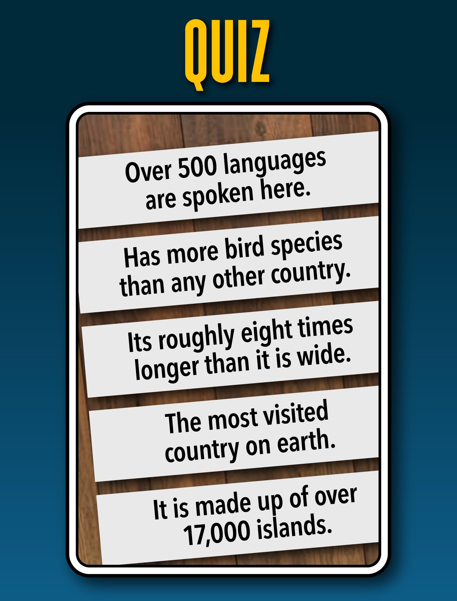 - PERFECT GIFT for geography enthusiasts: 50 Cards of fun and facts about countries of the world. Features 25 country flag cards showing atlas view and country flag organised by continent - each country flag card pairs with its corresponding country fact card with top stats like population, tallest mountain, happiness rating, miles of coastline, green energy percentage, and a fun fact.